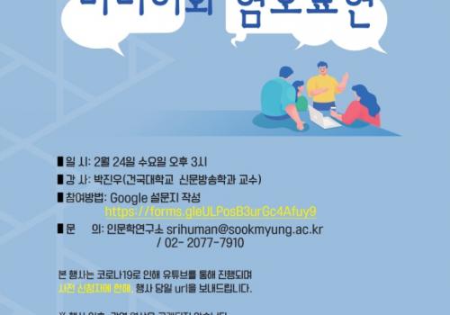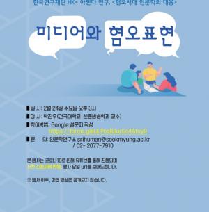 ◆ 숙명인문학연구소 2021년도 상반기 정기학술대회<한국 사회의 혐오: 법과 제도를 중심으로> 우리 인문학연구소는 2020년부터 한국연구재단 인문한국플러스(Hu...